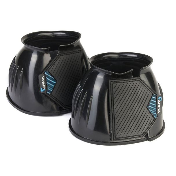 Ideal for schooling, exercise and turnout. Durable over reach boots in bright glossy colours. The flexible material deflects blows to protect the heel bulb. Easy grip double sided touch close straps secure the boot with reassurance. Attractive wide rubber straps are finished with the ARMA logo.